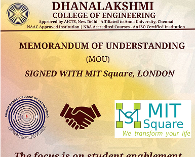 Dhanalakshmi College of Engineering has now grown into a ‘distinguished centre for engineering and technological studies’, providing a serene environment and congenial atmosphere for learning. The institution not only provides quality engineering education to mould the students into technologically sound, efficient, effective, and creative engineers but also moulds them as responsible human beings.