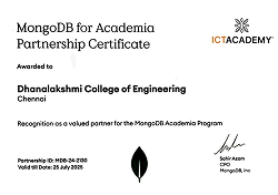 Our institution is recognized as a Valued Partner for the MongoDB Academic Program by the MongoDB University through ICT Academy. Mr. Partha Sarathi S, ICT Coordinator received the certificate.