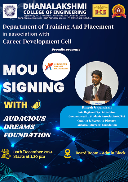 The department identifies the training needs based on the industry requirements from time to time and trains the students using corporate trainers and assists the students for completing certification courses and make the students ready for appearing placement drives.
